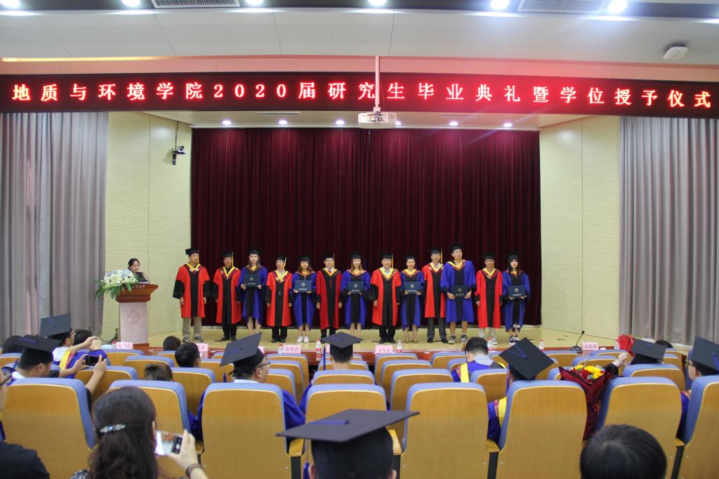 7月27日,地质与环境学院在雁塔校区主楼报告厅举行2020届研究生毕业典礼暨学位授予仪式,地环学院教授委员会成员、学院党政班子成员、研究生导师、研究生教务员、辅导员、2020届毕业研究生参加典礼。学院副院长唐胜利教授主持毕业典礼暨学位授予仪式。
