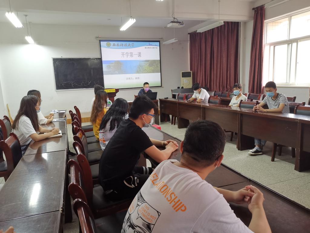 5月20日16:00,地环学院本科“返校学生第一课”宣讲会在临潼校区骊山校园11教322顺利召开,本次宣讲采用线上线下结合方式进行,参加线下会议的学生干部、党员代表按照体温测定、佩戴口罩等要求有序进入会场,院学工办主任林伟、辅导员桓斌斌分别从疫情防控知识、校内管理规定、毕业生管理、就业考研工作等方面进行了宣讲,并就下一步的防控管理和毕业生就业工作进行了安排。