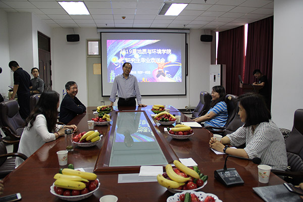 2019年6月27日,地环学院在雁塔校区煤科大楼613会议室举办了2019届研究生毕业欢送会。参加欢送会的有地环学院党委书记赵雪萍、院长王生全、副书记王文莉、副院长唐胜利、侯晨涛,研究生导师代表赵洲、程爱华,研究生与学科办主任高欣、辅导员韩蕊及2019届毕业研究生。