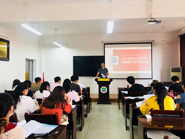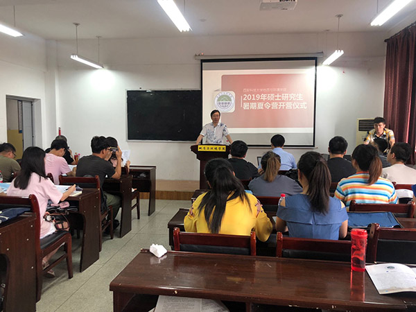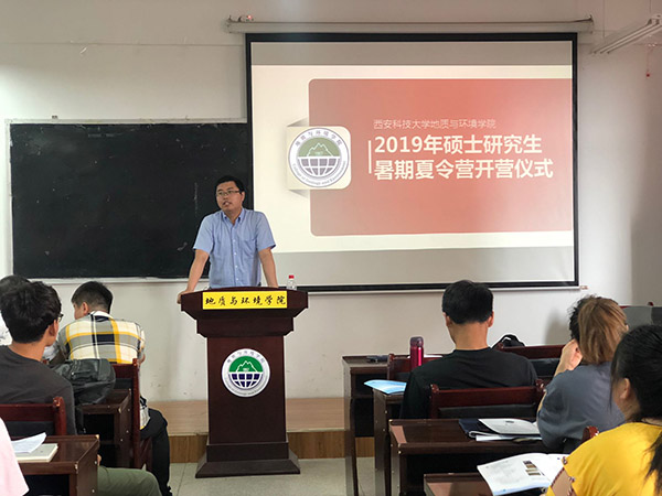 7月3日上午9点,地环学院在临潼校区骊山校园学院学术报告厅举行了2019年硕士研究生暑期夏令营开营仪式。地环学院党委书记赵雪萍、副院长唐胜利、环境工程系副主任修福荣、地质工程系副主任马建全、资源勘查工程系副主任李焕同、研究生及学科办公室主任高欣、辅导员桓斌斌以及24名学生参加了本次开营仪式活动。