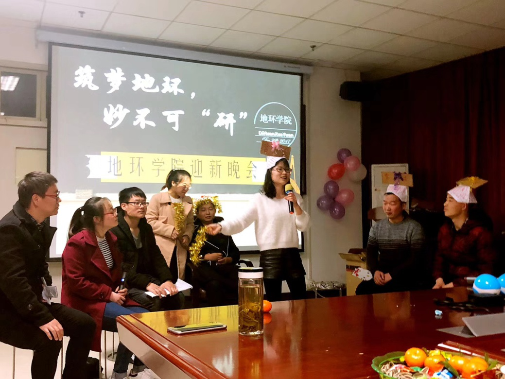 12月22日,地质与环境学院举办的 “筑梦地环,妙不可'研'”2017级研究生迎新晚会在雁塔校区行政楼顺利613举行。副院长唐胜利老师、研究生培养办高欣老师、辅导员韩蕊老师、魏少妮老师、余小涛老师及全体研一新生一同观看了晚会。