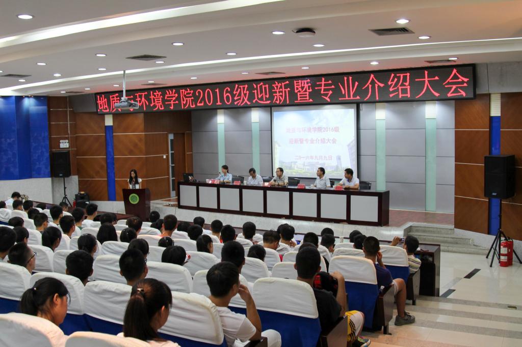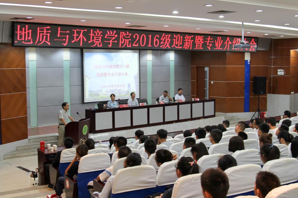 9月9号下午,地环学院2016级迎新暨专业介绍大会在图书馆报告厅顺利举行,地环学院党政领导,教师代表、辅导员及全体2016级新生参加了此次大会,会议由院党委副书记王文莉主持,教师代表李琴、院学生会主席杨天、2016级新生代表程娇进行了发言,院长王生全全面介绍了学院的发展情况,并对新同学寄予希望,希望同学们尽快适应大学生活,珍惜难得的学习深造机会,力争成为祖国的栋梁之材。