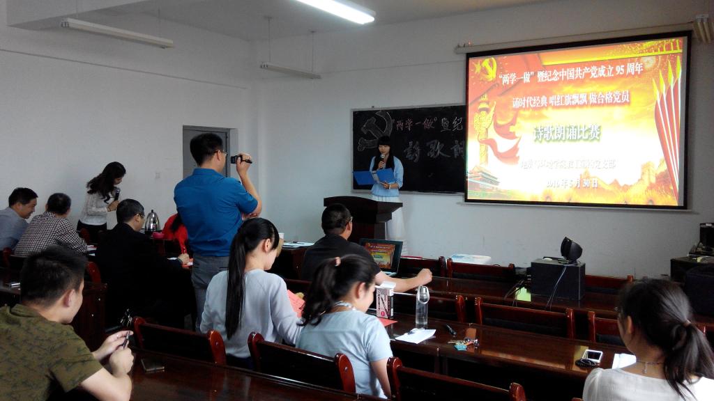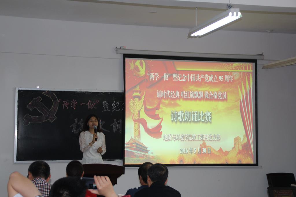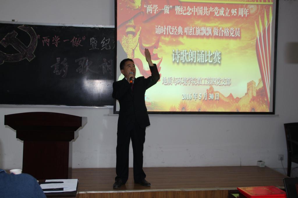 5月30日,地环学院教工第四支部举办主题为“诵时代经典 唱红旗飘飘 做合格党员”诗歌朗诵比赛,学院党委委员、第四支部全体党员、特邀学生代表参加了朗诵会。