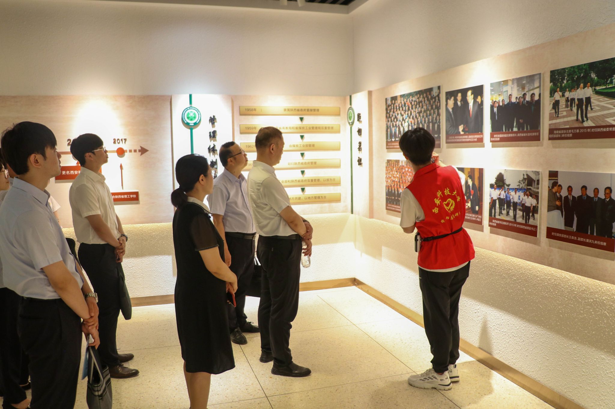 会后,陕西地矿集团一行参观了校史馆、模拟矿井实验室和地质博物馆。通过实地参观深入感受学校在矿业工程、地质勘探等领域的教学科研与深厚历史底蕴。在地质博物馆内,陕西地矿集团校友与学院学生围坐一起,围绕地矿企业对青年人才的培养模式、行业所需专业技能,以及毕业学长给予学弟学妹的成长建议等话题展开深入探讨。校友们结合自身职业发展经历,为同学们答疑解惑,分享宝贵经验。