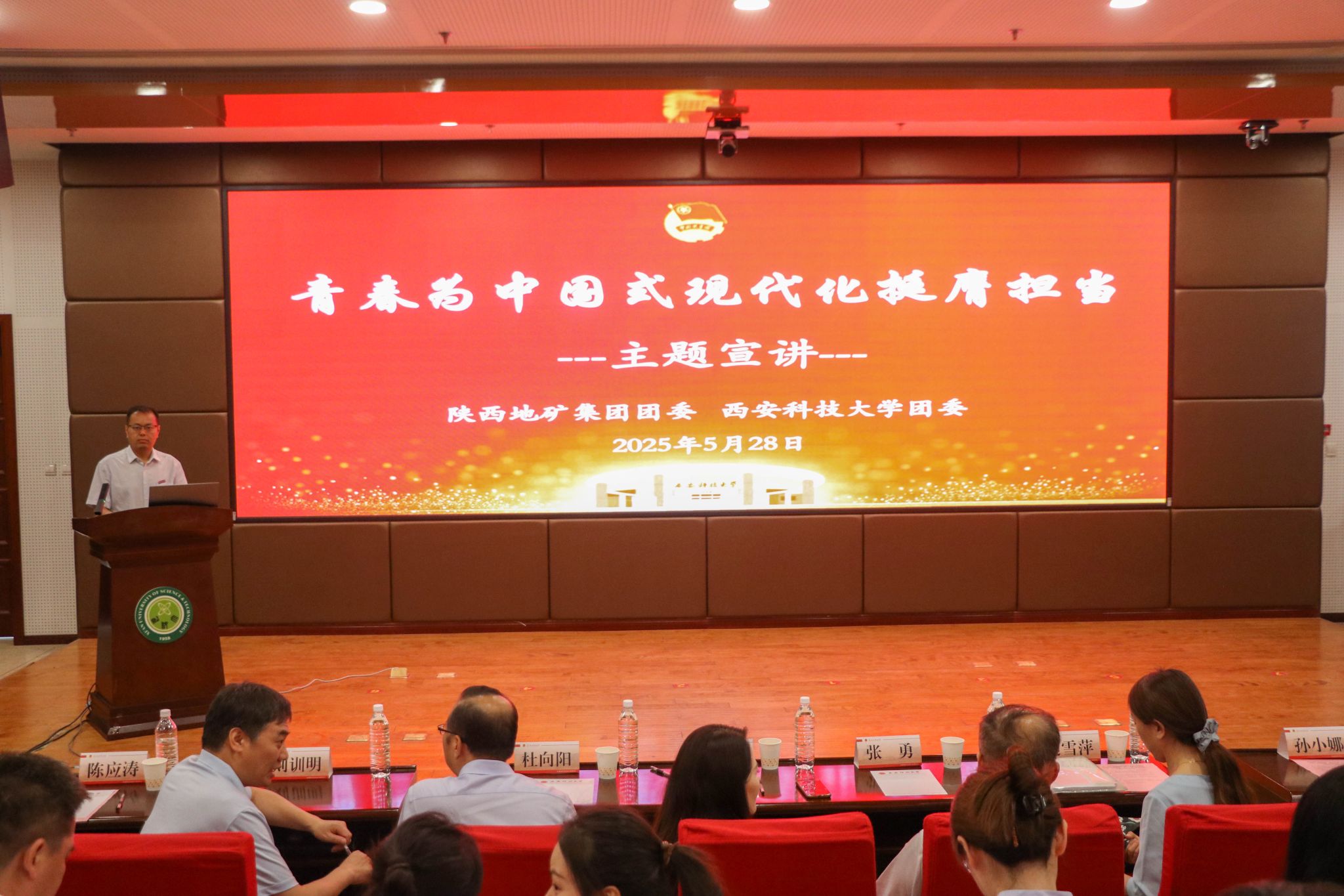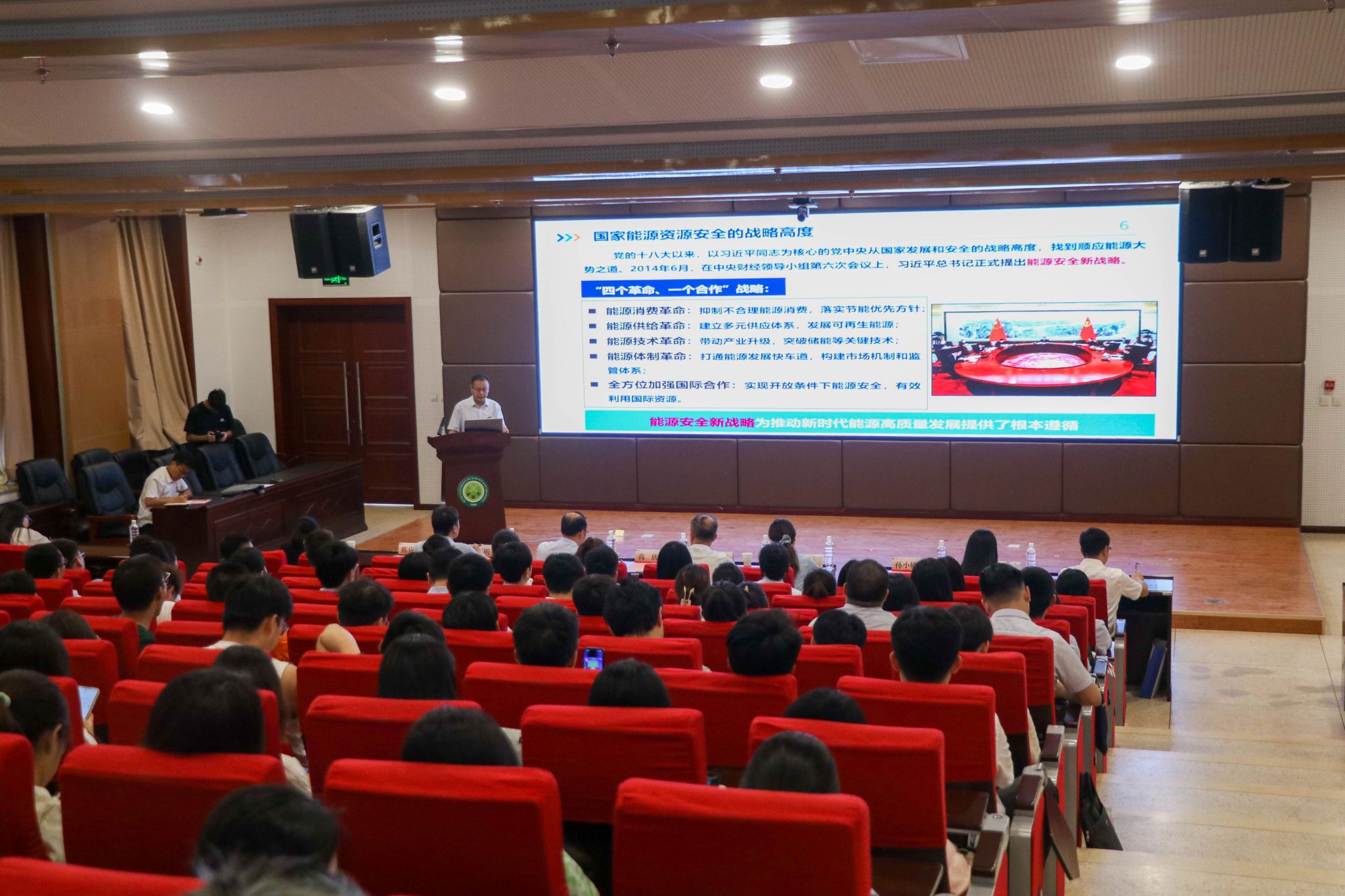 陈应涛作《共筑能源资源安全地质基石--新时代国家能源安全观下地质人的使命与担当》专题报告。他从国家能源安全观战略高度出发,剖析地质工作在筑牢安全基石中的关键作用,阐述地质人使命担当,并结合西科地质人案例,展现师生积极作为,为在场青年明晰奋斗方向。