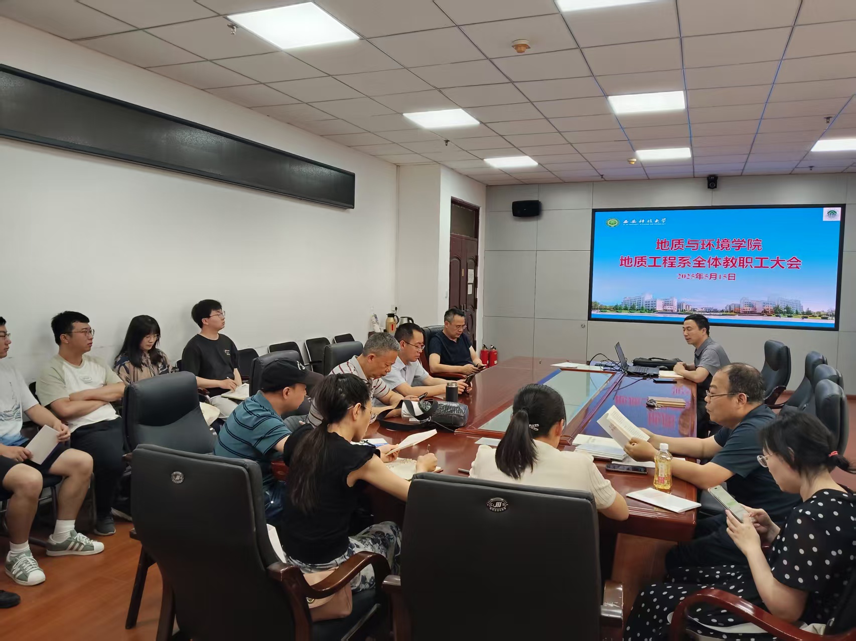 5月15日下午,地质工程系在雁塔校区学院6楼会议室召开全系教师大会推进2025年度重点工作,会议由系主任马建全主持。