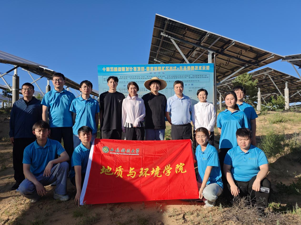 学院“‘煤’好未来”生态能源实践团第一小分队第六站,来到曹家滩煤矿区光伏+生态修复技术示范基地开展学习调研。此次实践活动由学院党委书记赵雪萍带队,副书记刘训明、团委书记李琳,辅导员余小涛、周佳瑞及13名学生共同参与。基地内,郝汉文和白祖诚两名硕士生正在开展实验工作。