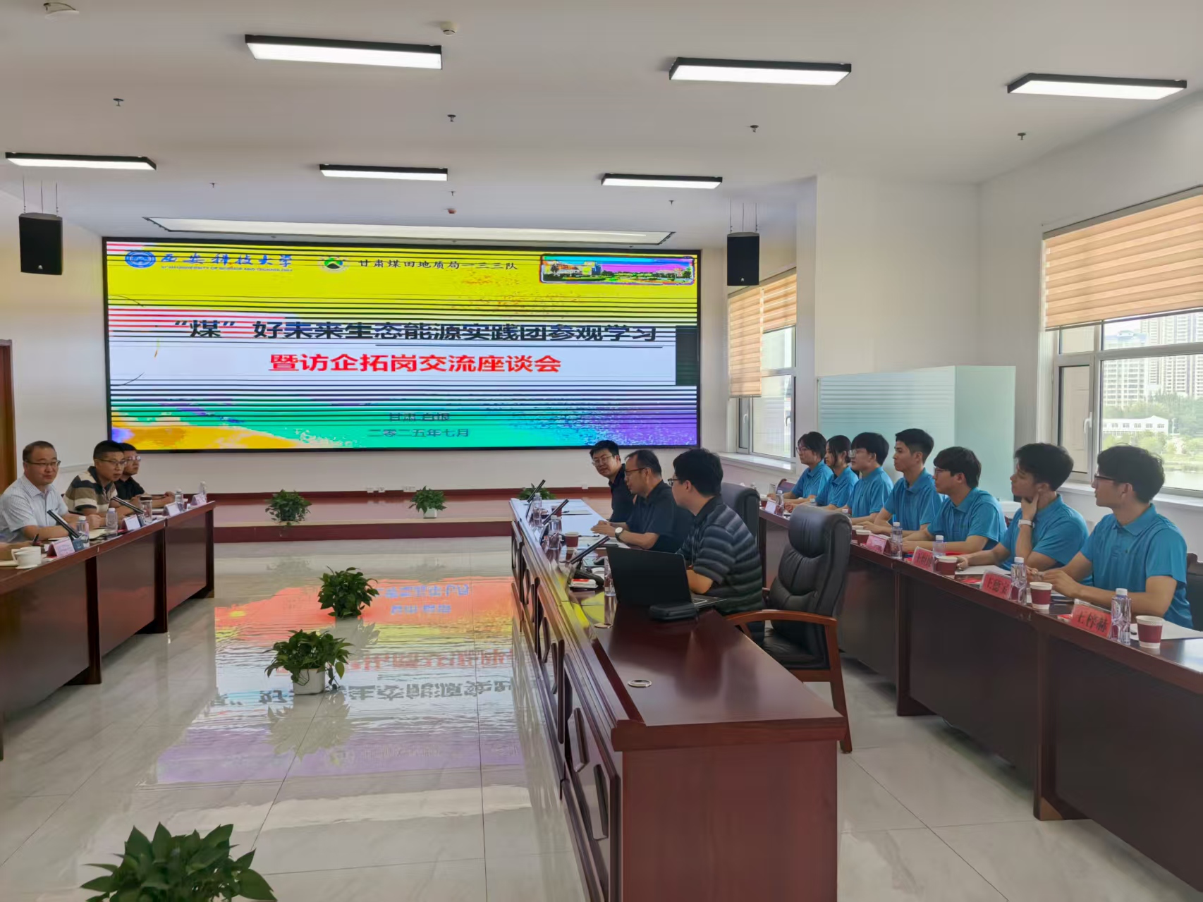 实践团小分队与甘肃煤田地质局133 队开展座谈,133 队党委书记兼队长骆得福、总工程师李玉畅等参与座谈。总工程师李玉畅介绍了单位当前的业务范围、发展状况及人才需求情况。副院长陈应涛介绍了学院的基本情况、学生的专业类别及在校期间主修的专业课程,并表示学院所设的专业类别及专业课程与甘肃煤田地质局 133 队业务范围高度吻合,未来将加强向 133 队的人才输送力度,为我国煤炭行业的发展添砖加瓦。